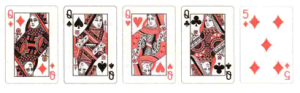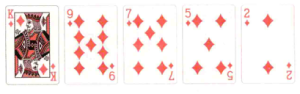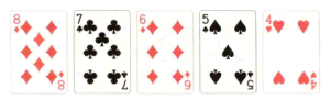 順子:五張連續但不同花色的牌。